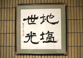 旧校舎から引き継いだもの「地の塩、世の光」(エントランス壁面)