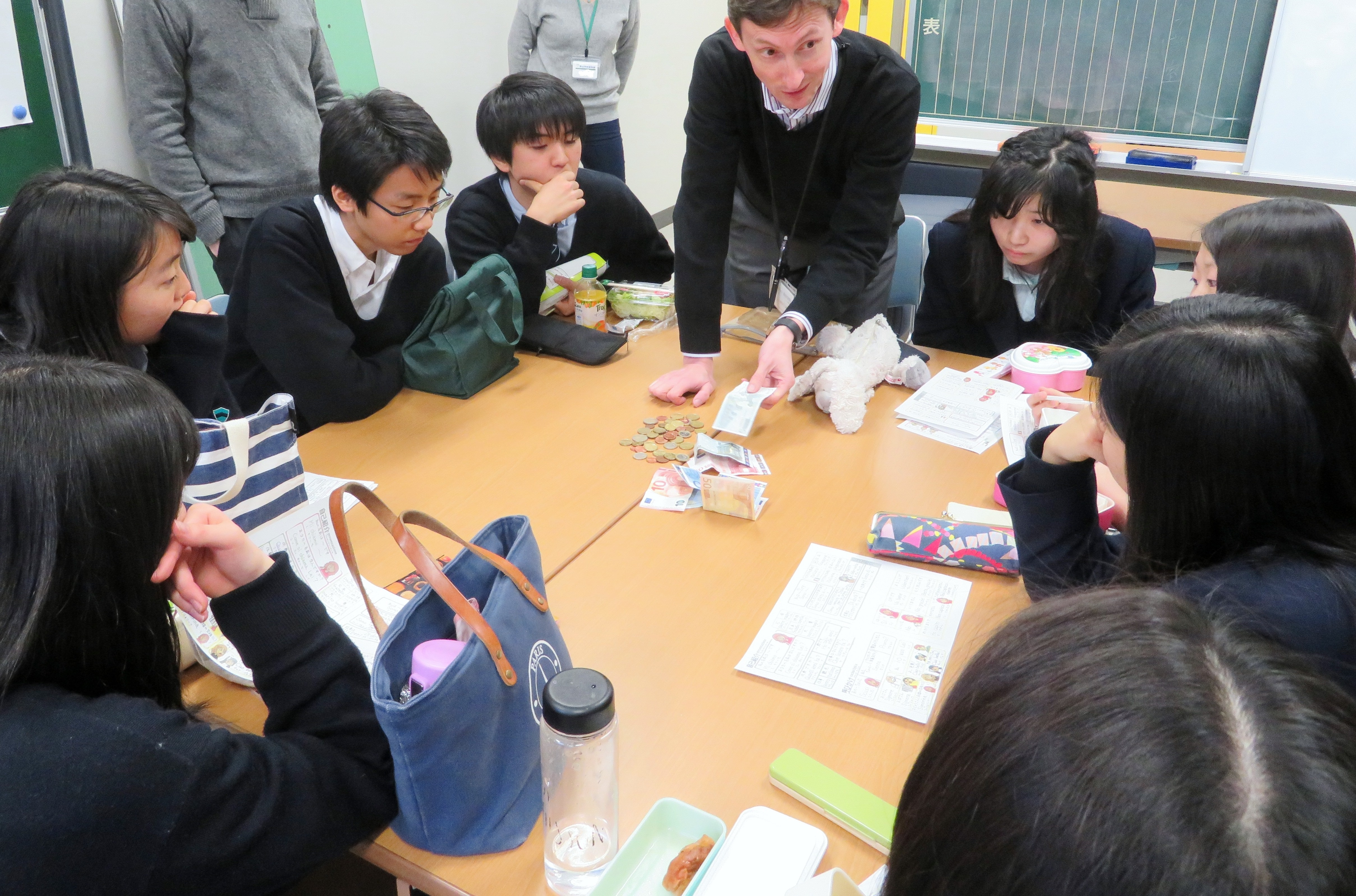 イタリア語の会話セッション、イタリアの文化、生活について、また実際に通貨(ユーロ)を手に取って学びました。