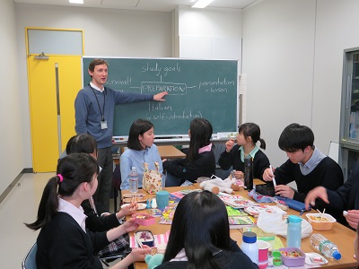 日本の文化紹介プレゼンテーションや、”TRY JAPAN”と題した習字や折り紙などのレクチャー、日本語クラスのレッスン等、日本についての理解をより深めてもらう為に生徒たちが工夫を凝らしながら取り組んでいます。