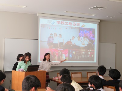 昨年度参加した生徒の発表では、各々のプログラムで経験した現地での学校生活やホストファミリーとの様子など、写真を交えながら紹介してくれました。文化・習慣の違いや言語の壁を乗り越えて築いたバディとのフレンドシップは、プログラムが終了した現在でも続いていることも共有してくれました。