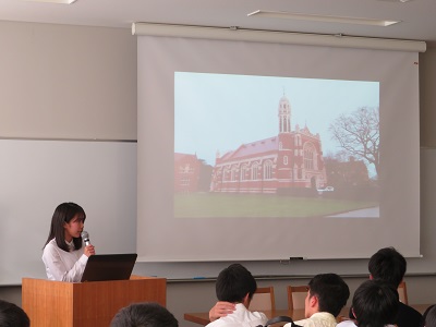 今年度も実施が予定されている英国リーススクール・イタリア レニャーニ校 短期交換留学プログラムの説明会を行い、プログラムの概要・昨年度の参加者の発表・申込みに関しての諸注意について話されました。