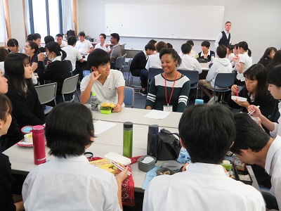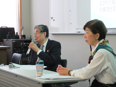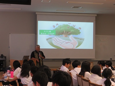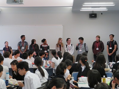 4名の高等部生がファシリテーターを務る中、元国連職員の山本和氏・山崎節子氏をお迎えしての講演会とディスカッションを開催しました。