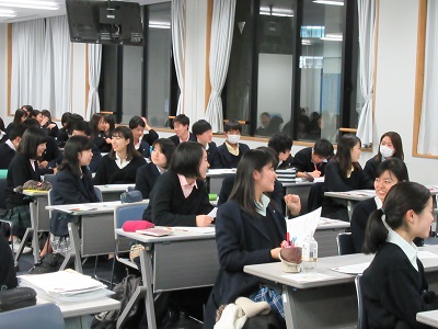 2019年1月9日、大教室にて高大連携国際理解・留学準備プログラムの総合オリエンテーションが行われ、多くの生徒が参加しました。