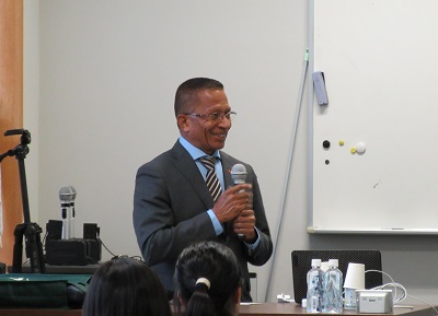 一昨年にも高等部にお招きした、特命全権大使 フィロメノ・アレイショ・ダ・クルス閣下より「21世紀最初の独立国、東ティモールの描く未来」と題してお話しいただきました。