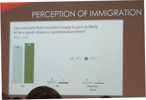 カナダは多様性に誇りを持っていて様々な政策やアプローチをしながら、互いに尊重し合うことを大切にしている。ということを世論でのデータや具体的な事例などを用いながら説明してくださいました。