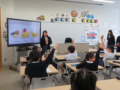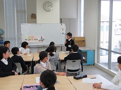 初等部の英語科の先生からの依頼を受け、毎年春休みに行われるフィリピン訪問プログラムに参加した高等部の生徒たちが初等部5年生の英語の授業4クラスにてフィリピンについてのセッションをおこないました。