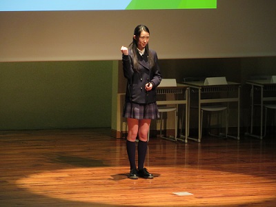 オーラルコミュニケーションの発表では、「Super Power of Fantasy」と題して、ノーベル平和賞を受賞したマララ・ユスフザイさんのエピソードを元にスライドショーやボディランゲージを取り入れた英語でのプレゼンテーションをおこないました。