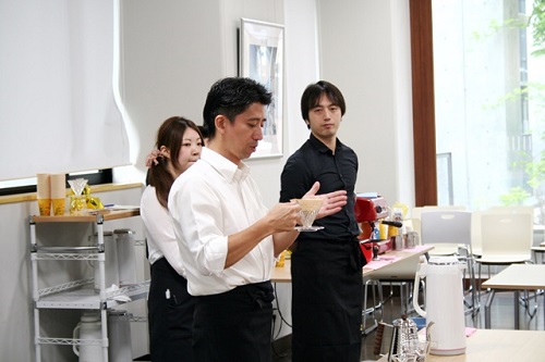 コーヒーの淹れ方には、主に3種類あり、今回は注水という方法でおいしいコーヒーの淹れ方をレクチャーしていただきました。