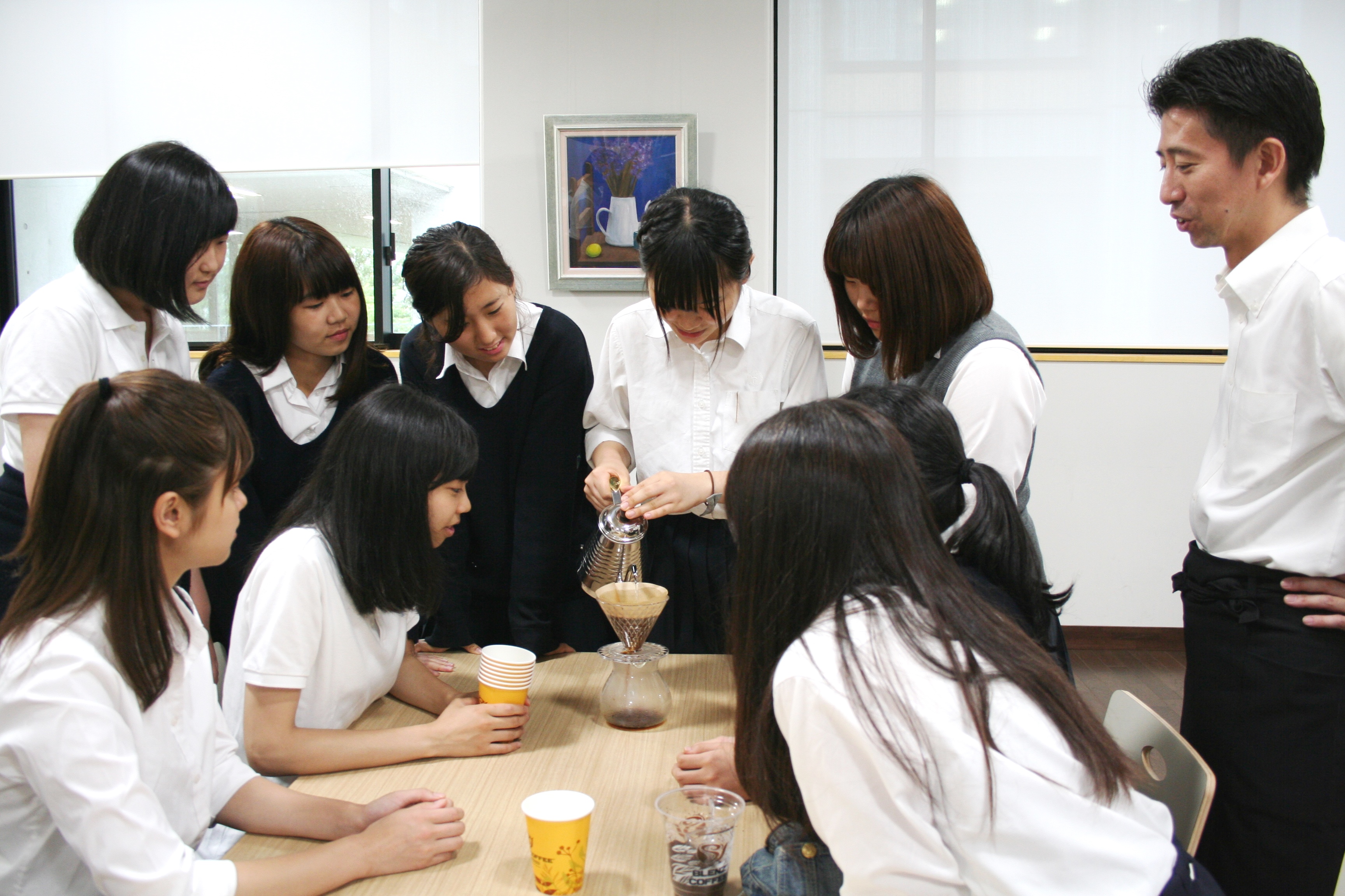 コーヒーを普段飲まない生徒も参加していましたが、今回のレクチャーでコーヒーの知識やおいしい入れ方を知って、それぞれコーヒーを楽しんでいました。