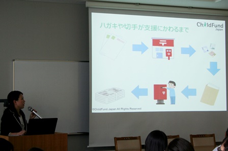 第1日目は昼休みにチャイルドファンドジャパン(CFJ)の方をお迎えして、お話をしていただきました。