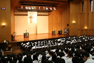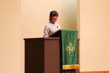 第2日目は礼拝に三森牧師をゲストに迎え、お話をしていただき、昼休みはボランティア部がホームレスについて知るワークショップを実施しました。
