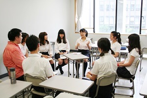 第2日目から4日目まで通して昼休みに行われたスペシャルチャットルームでは、青山学院大学に通う留学生をチャットリーダーに迎えて、英語で難民について考え、話し合いました。
