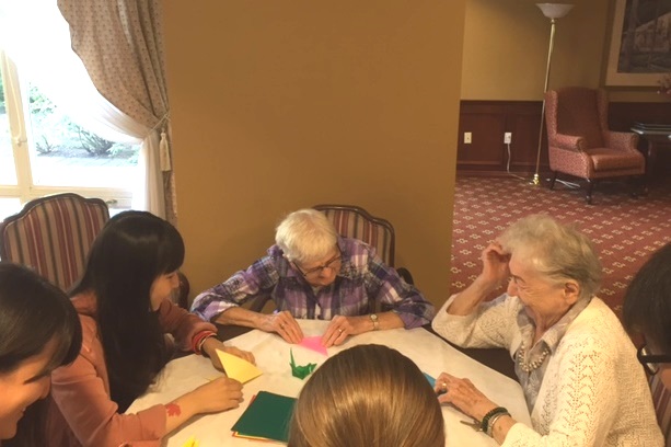 老人ホームへ訪問も行きました。一緒に話をしたり、折り紙をしたり、お部屋に連れていっていただきました。国境を越え、世代を越えた交流は生徒たちにとってとても貴重な体験でした。