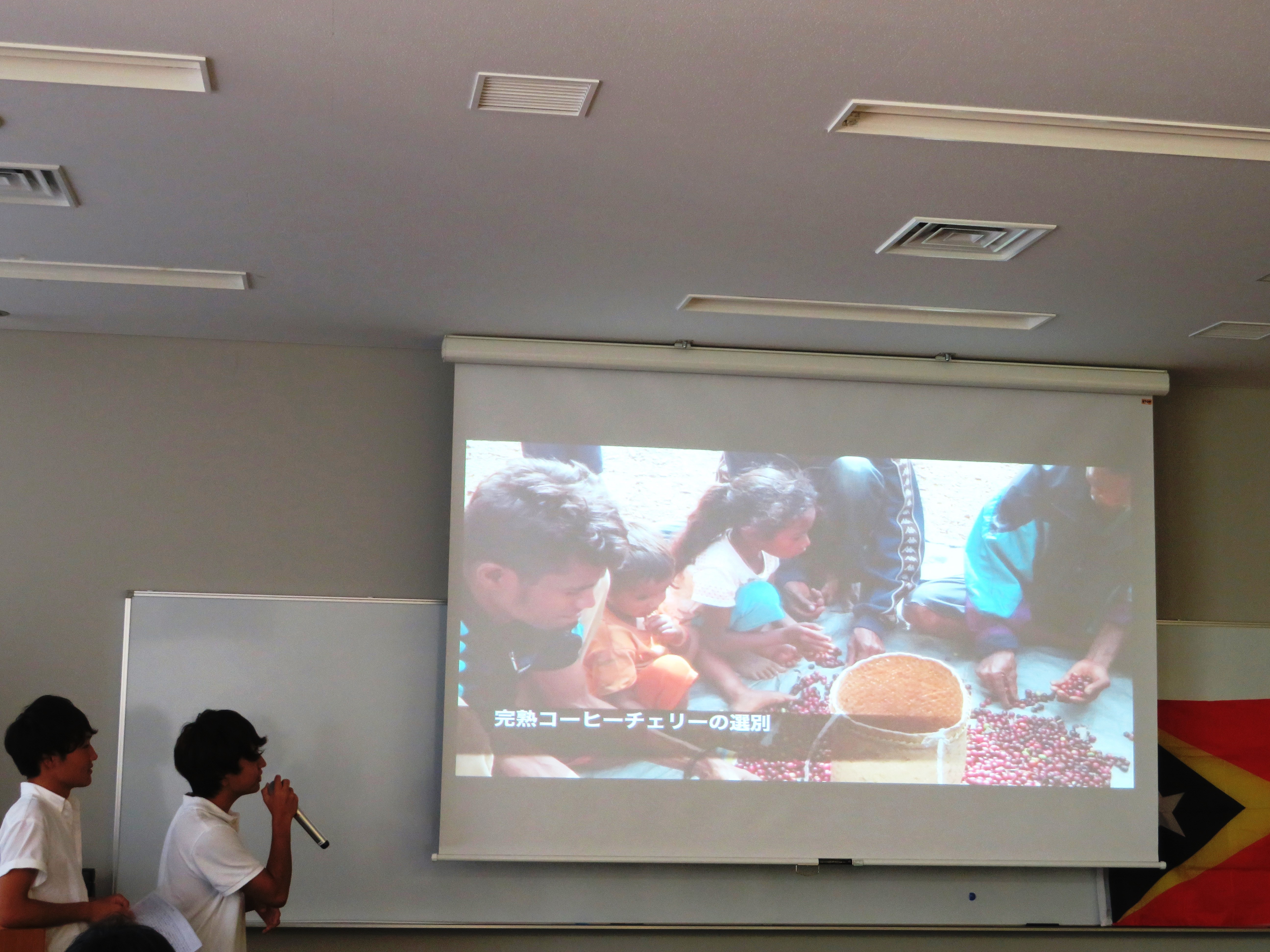 この夏東ティモールへ実際に行った生徒が、東ティモールの状況や現在抱える問題、また今後の取り組みについて報告しました。