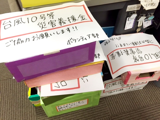 2016年9月27日~29日、ボランティア部による、「台風10号等災害義援金」への募金活動を実施しました。
