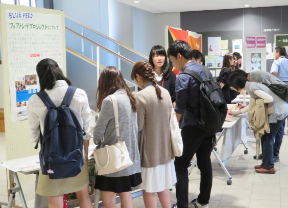 4日目のお昼休み、現在、生徒自主団体であるブルーペコがフェアトレードによる支援をおこなっている