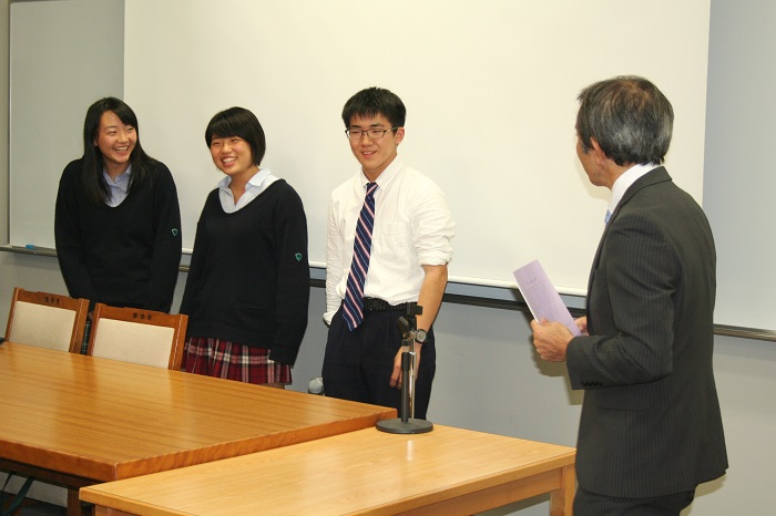 座談会では高等部から長期留学に行った生徒3名が話しました。