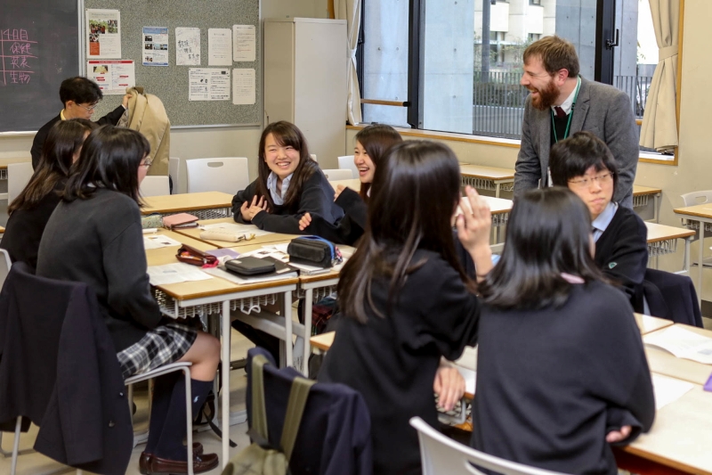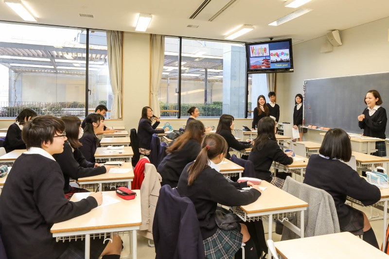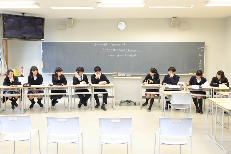 第二部では公開授業として、上級英語・メディア・イングリッシュ・現代社会特講 (ディベートの授業)を実施し、本校カフェテリアでの懇親茶話会をもって閉会としました。