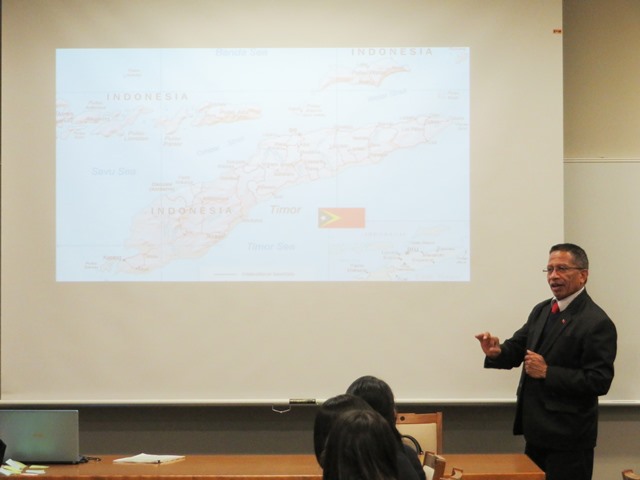 東ティモール民主共和国大使館より、特命全権大使 フィロメノ・アレイショ・ダ・クルス閣下 をお迎えして、「独立と復興」をテーマにお話しいただきました。