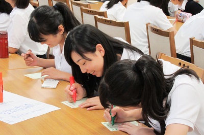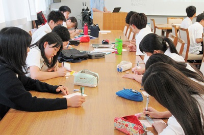 昼休みという短い時間でしたが、チャイルドからの感謝のメッセージ動画を見て、生徒達はそれぞれ真剣に手紙を書いていました。
