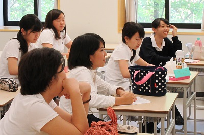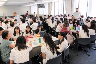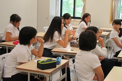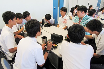 各国から集まった10名のチャットリーダーにアメリカから2週間高等部に短期留学で来ている高校生5名が加わり、高等部生たちと様々な意見交換が行われました。