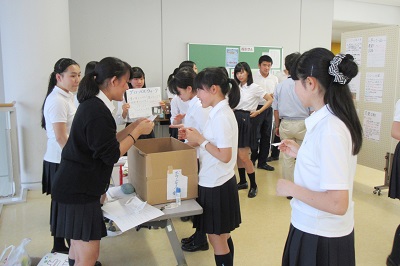 最終日の昼休みはボランティア部主催のワークショップ「わたしたちがアジアにかける橋」を行いました。