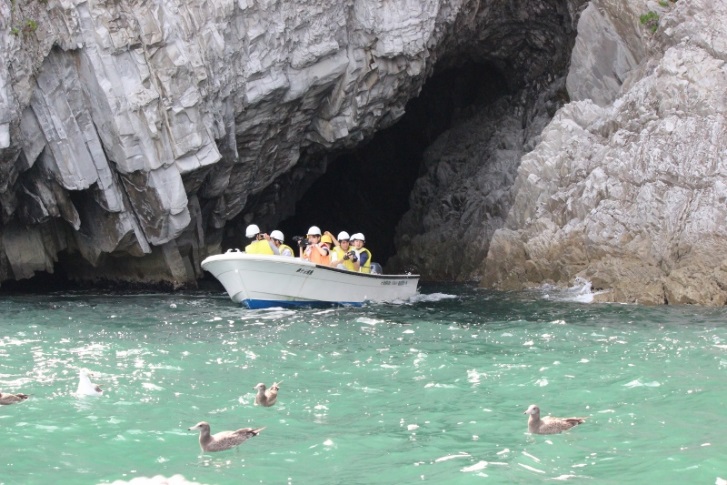 浄土ヶ浜では宮古の海の美しさを味わい、その後の防災研修では、同じ海が津波の悲劇をもたらすこと、災害は過去の出来事でなく私たち自身のこれからの問題だということを改めて学びました。文化祭で販売する田老のわかめについて、実際の作業を通して、その製造過程の苦労も体験しました。