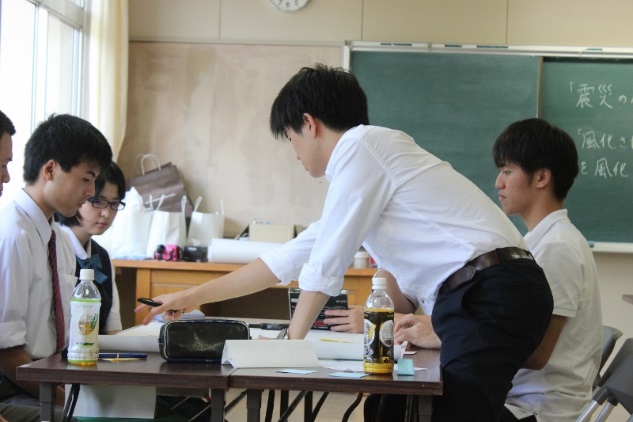 昼から訪問した宮古北高校では、ソフトバレーボールで生徒同士の親睦を深めてから「震災の風化」について話し合いました。「風化させてはいけないことは何か」を付箋に挙げていき、「そのためにできることは何か」を議論しつつ各グループで1枚の模造紙にまとめ、発表し合いました。異なる状況にあった両校の生徒がそれぞれの視点で意見を出し合い、それを互いに謙虚に受けとめ、学び合うことができました。 今年は生徒同士がふれあう時間を長く確保でき、非常に充実した交流になりました。