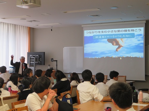 毎日の礼拝では、今年度の夏休みに実施された「宮古訪問プログラム」、「東ティモール・スタディーツアー」に参加した生徒や留学経験を持つ生徒が学んだこと、考えたことを話しました。また、NGO「声なき者の友」の輪から神田英輔氏をお招きし、お話いただきました。