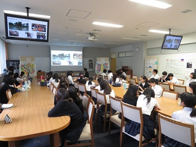 現在高等部における、フィリピンプロジェクトを立ち上げ活動している昨年度プログラム参加生徒から、次年度のフィリピン訪問に参加を希望する生徒に向け、報告と説明会が行われました。フィリピン訪問から、Global WeekⅠで行ったプロジェクトの背景、自分達が学んだことや高等部が支援しているフィリピンのチャイルドたちの現状について共有しました。また、この支援に携わっているチャイルドファンドジャパンからもゲストをお迎えしてお話いただきました。