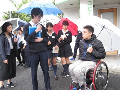 車いすバスケットボールのパラリンピック日本代表選手を迎えて、デザインシンキングの手法を取り入れたソリューション開発プロセスを体験。いつもとは違う視点から物事を見つめるヒントを得て、選手たちと渋谷の街を歩き、多くの課題を見つけました。また、グループごとにその課題を解決に向けたディスカッションを行い、最後にプレゼンテーションを行いました。