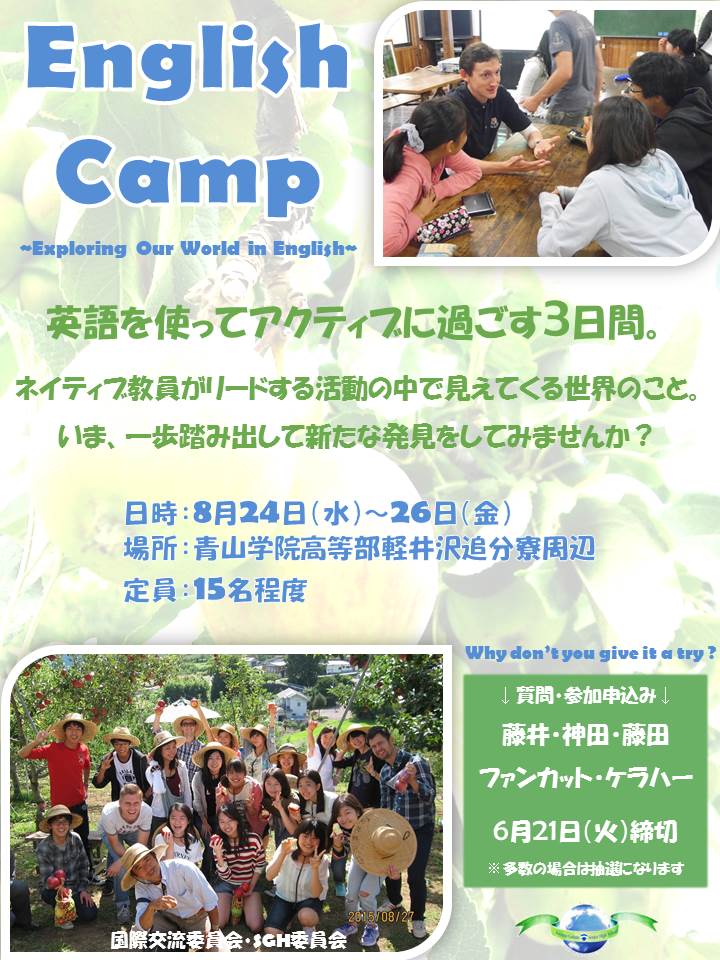 2016年8月24日(水) ~ 8月26日(金)軽井沢の高等部追分寮にて【English Camp -多文化共生キャンプ-】を行います。