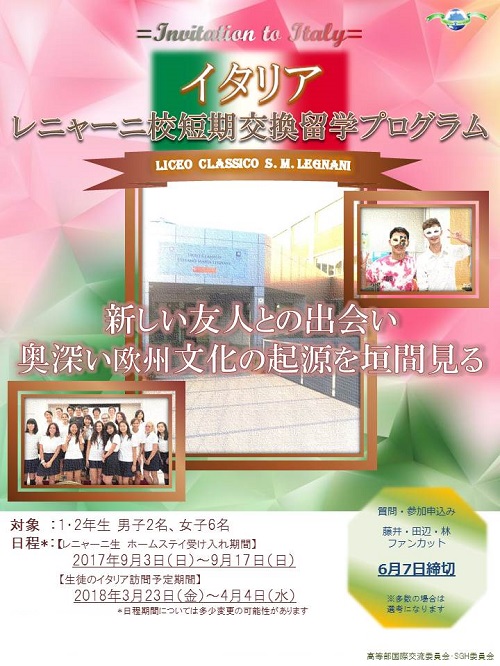 昨年度より提携が始まったイタリアの国立レニャーニ校との短期交換留学プログラムの参加者を募集します!
