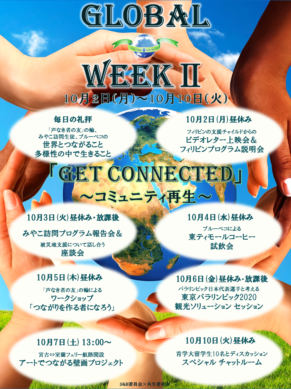 2017年10月2~10日の一週間、高等部ではグローバルウィークⅡを開催します。