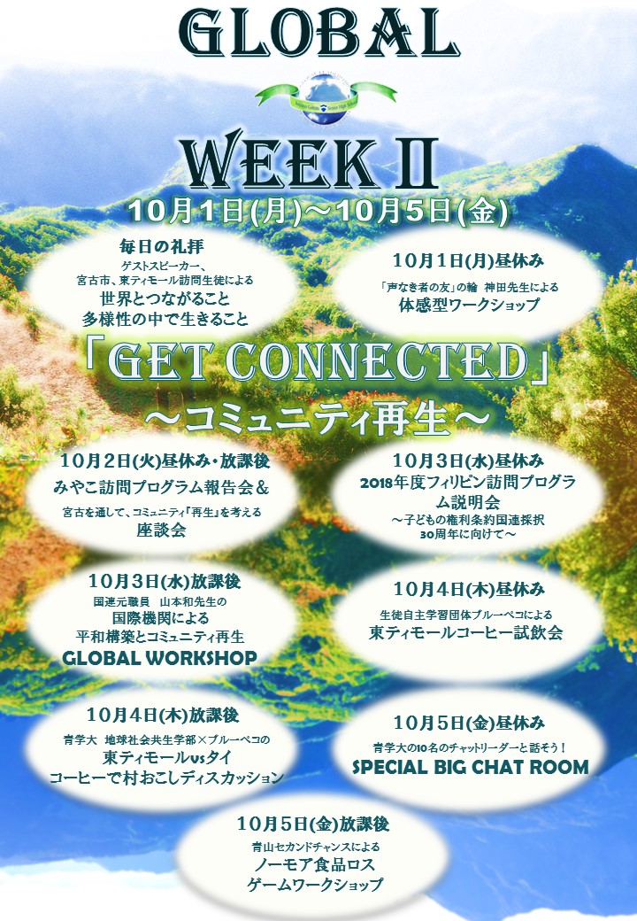 2018年10月1日~5日の一週間、高等部ではグローバルウィークⅡを開催します。